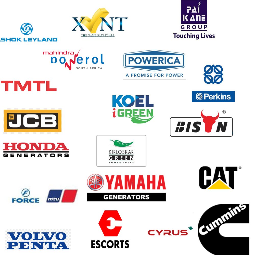 Cummins, Caterpillar (CAT), Ashok Leyland (Leypower), Powerica, Honda Portable Generators, Pelican Portable Generators, Yamaha Generators, Bison, HFS, XLNT Generator, Escorts, Tata, JCB, ...